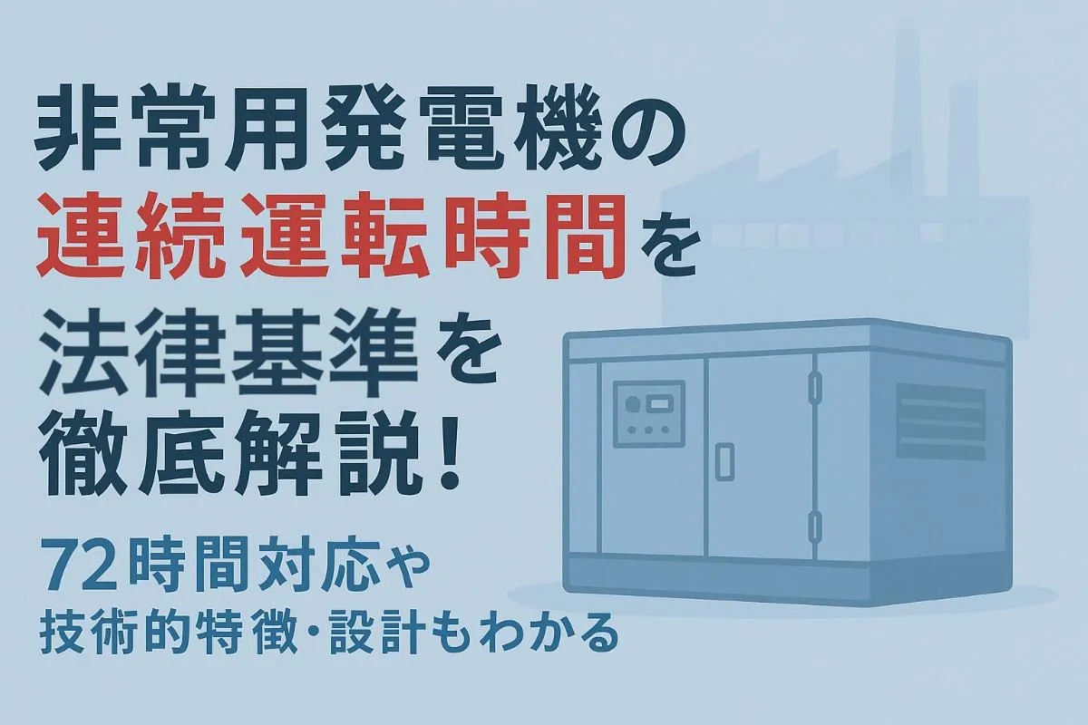 非常用発電機の連続運転時間と法律基準を徹底解説!72時間対応や技術的特徴・設計もわかる