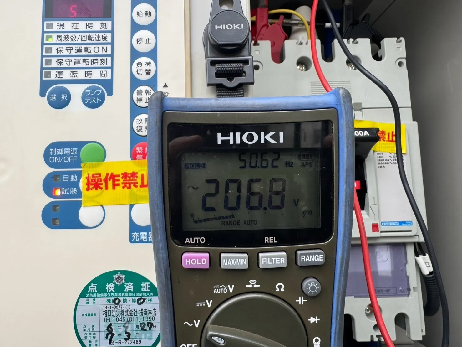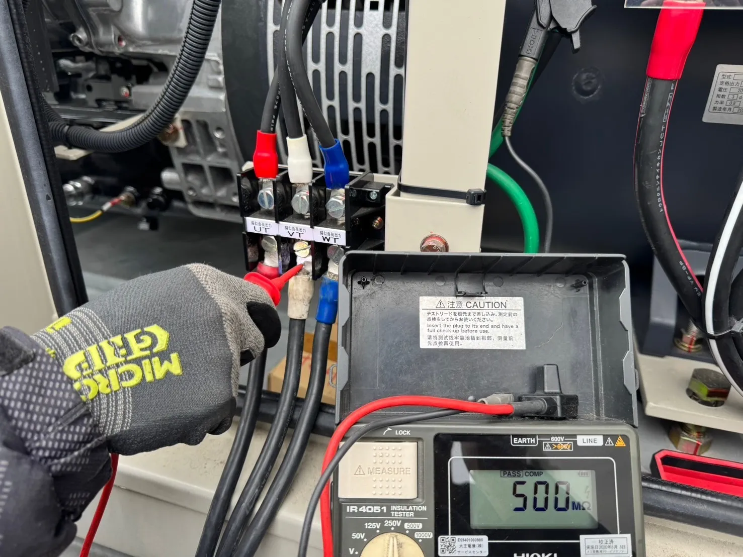 仮設ケーブルを接続したら接続箇所の絶縁抵抗測定を行ってからエンジンを始動していきます。