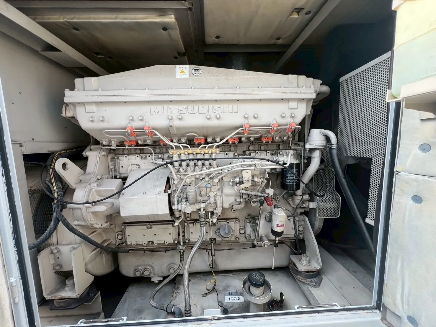 発電機が大きいため、早い段階から潤滑油や冷却水といった液物の抜き取り作業を行います。