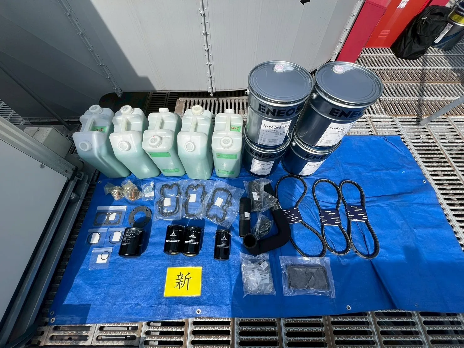今回は潤滑油・冷却水・フィルター類・ゴムホース・ベルト等の機関側の消耗品類のほとんどを交換していきます。